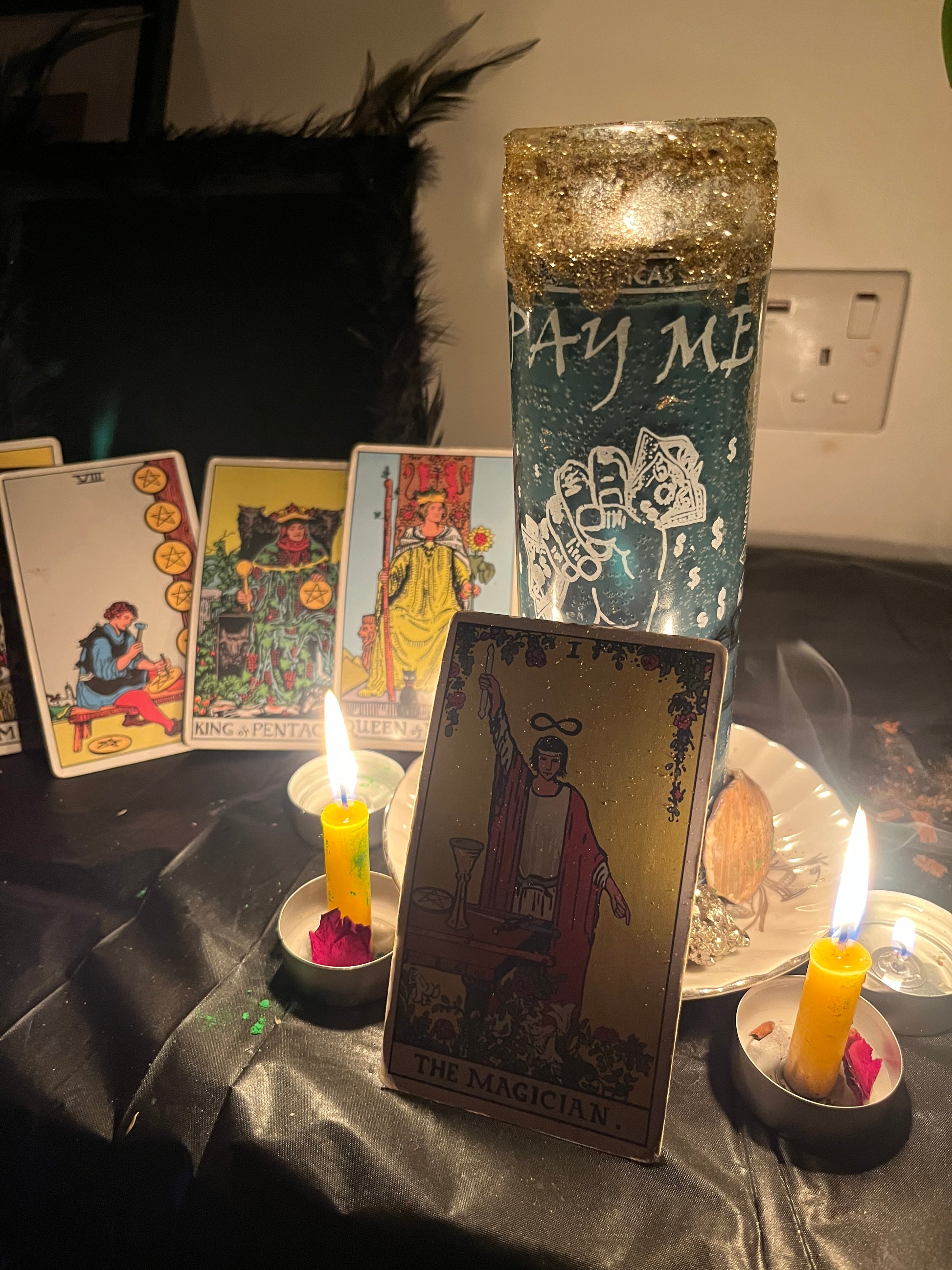 - Green & gold money-drawing candle ritual